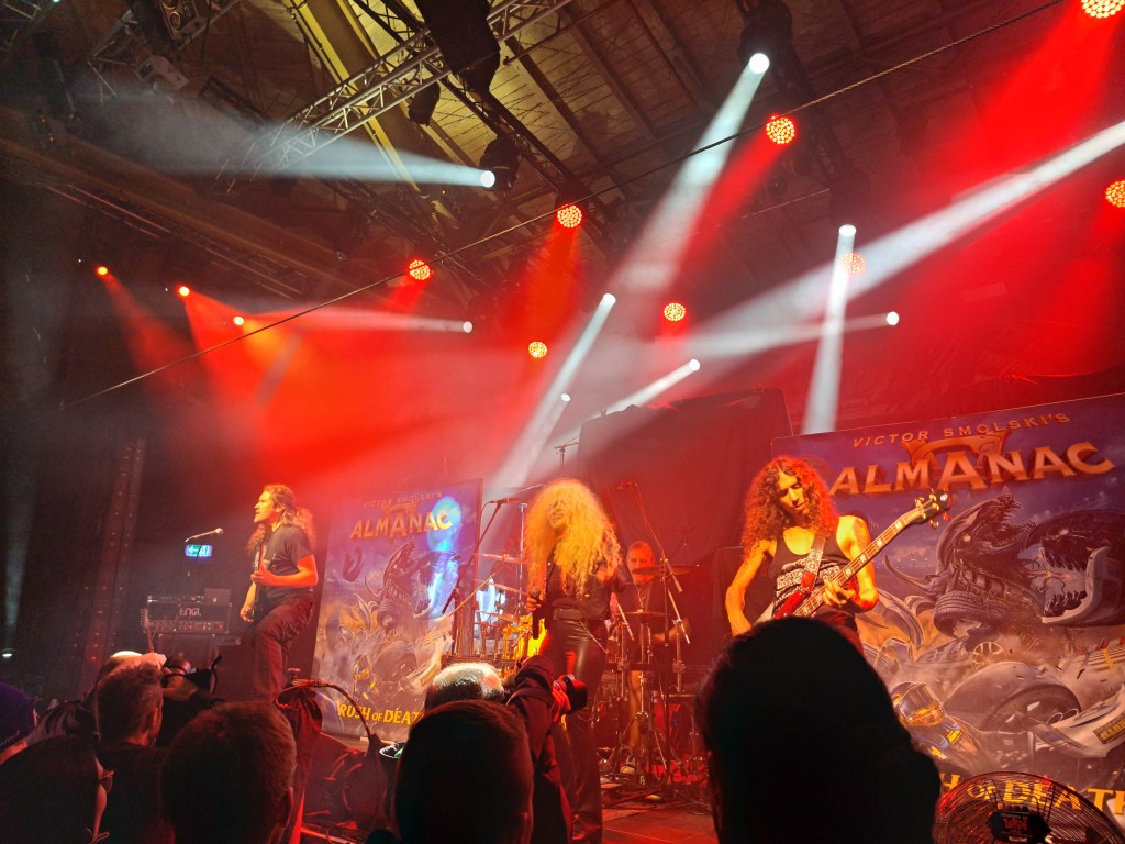 ALMANAC war die zweite Vorband und, wäre man böse, könnte man sagen, dass das ein Gitarrenporno war. Verdammt kann der Kerl in die Saiten greifen. Ich hatte daran richtig Spaß, auch wenn sehr viel instrumental war. Da der eigentliche Sänger nicht dabei sein konnte, hat er sich Unterstützung geholt und die hat es in sich. Naja wer so Klampfe spielen kann, der gibt sich nicht mit irgendwelchen Leuten zufrieden. Das werde ich auf jeden Fall mal im Auge behalten.