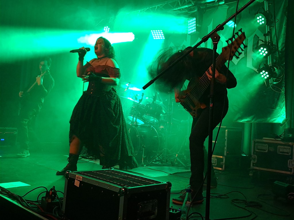 Den Anfang machten SIREN’S LEGACY und die haben mich richtig beeindruckt. Nicht nur, dass die mit einem Neunsaiter angetreten sind, hier hat einfach das Gesamtpaket gestimmt. Verdammt guter Gesang, richtig druckvolle Drums und Songs die richtig Bock machen. Die werde ich auf jeden Fall im Auge behalten, auch wenn Symphonic Metal sonst nicht so meins ist, also will das schon was heißen.