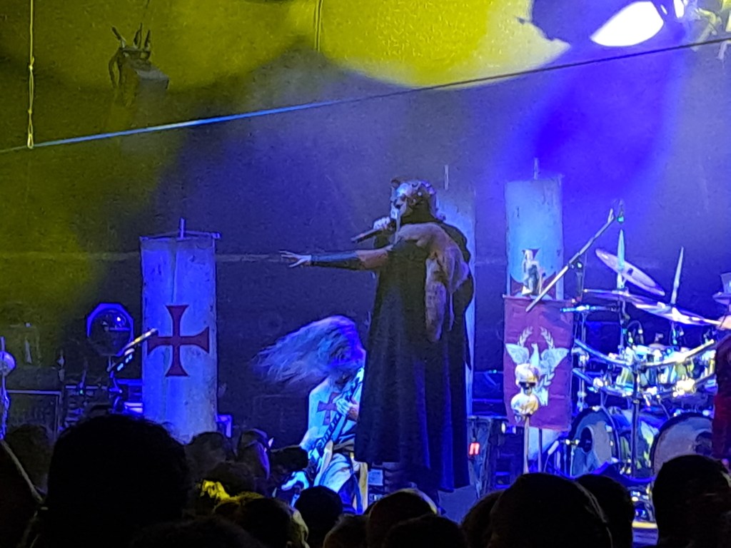 ANGUS MCSIX eröffnete den Abend und was soll ich sagen. Der Typ ist wohl nie von einem LARP zurückgekommen, jedenfalls geistig. Wir hatten hier im Prinzip alle Power-Metal-Klischees vereint, absurde Kostüme (vor allem seine Goldene Rüstung, samt beleuchtetem Schwert), hohe Schreie, eingängige Songs und ordentlich Energie. Also ein klasse Opener, bei dem die Garage schon richtig voll war.