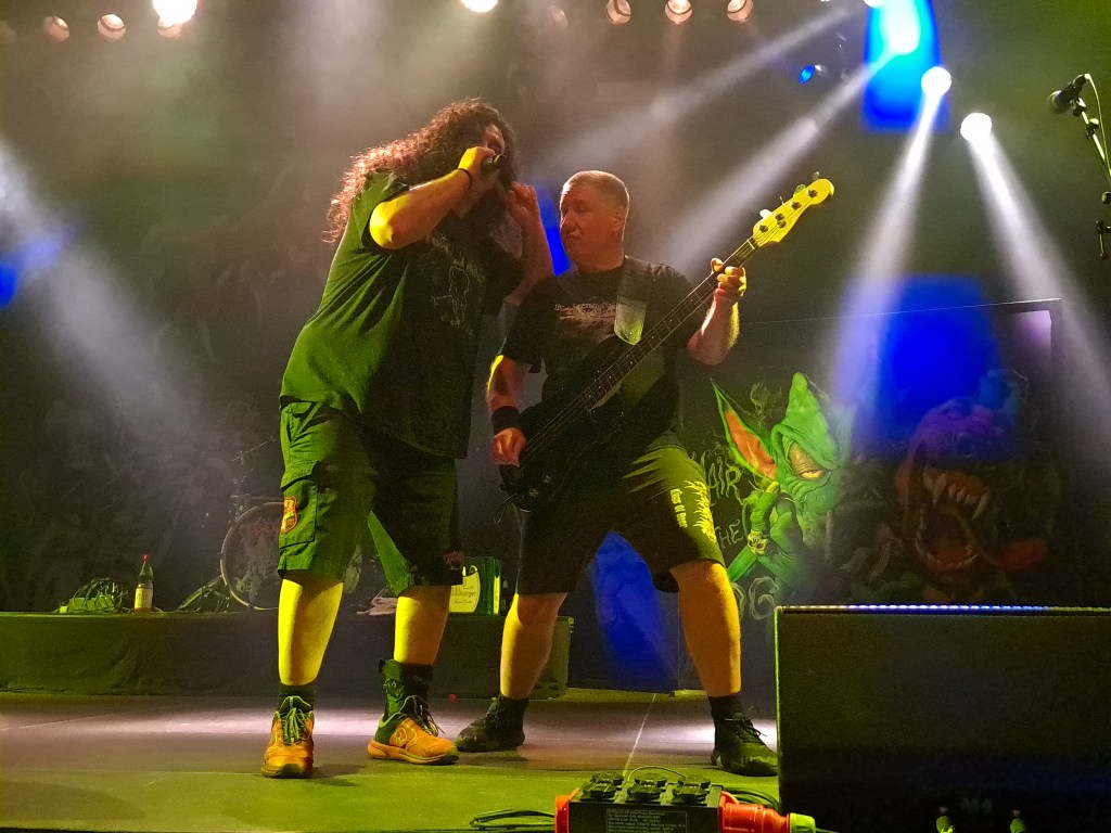 Danach kamen dann Tankard auf die Bühne und die sind immer ein Erlebnis. Die alten Säcke haben wirklich abgeliefert, wie bei den beiden vorigen Malen, als ich sie erleben konnte, nur blieb Gerre dieses Mal bierfrei. Man weiß aber nicht was in seinen „Sprudelflaschen“ war. Sie haben wirklich die Hütte abgerissen und Songs aus ihrer ganzen Diskographie gespielt. Mit Zwischenrufen aus dem Publikum haben sie kein Problem, eher haben sie sich darüber gefreut.