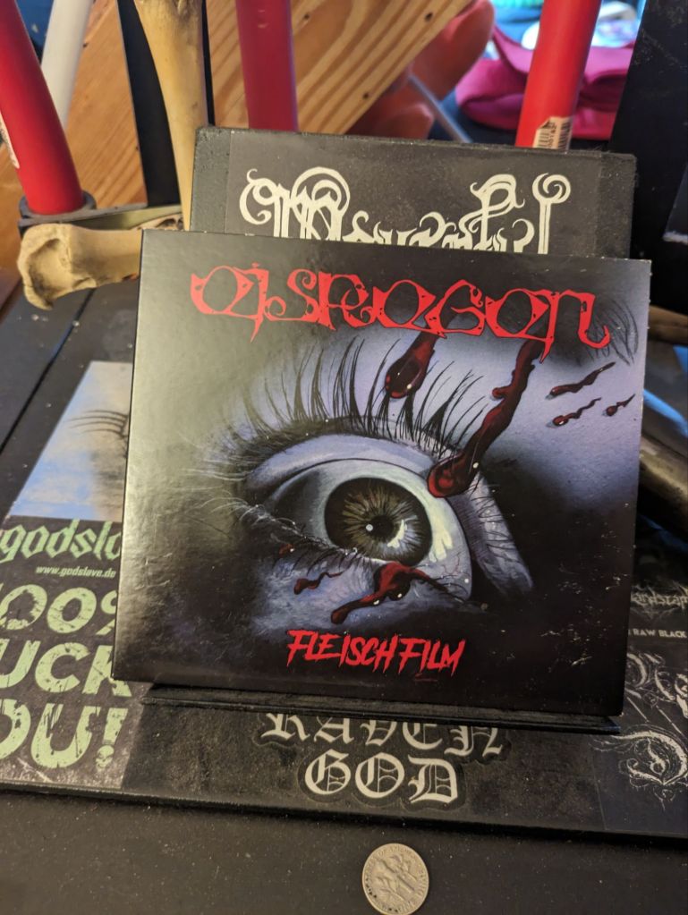 Das Album „Fleischfilm“ widmet sich der großen Leidenschaft von Michael Blutkehle Roth: dem morbiden Film, besonderes den blutigen Streifen aus Italien. Was den Stil angeht, ist das Album wirklich abwechslungsreich und mir macht es jedes Mal Lust auf einen Filmabend. Hätten Sie nicht Die letzte Reise des Allan Yates (Metamorphose des Seins) gemacht, wäre ich wirklich enttäuscht gewesen. Wer die Band einmal live gesehen hat, der weiß dass unser Blutkehlchen meistens, um nicht zu sagen immer, ein Hemd von Cannibal Holocaust trägt. Beim Syndikat des Schreckens wird es wieder elektronisch, während sie sich den neapolitanischen Drogenkriegen widmen. Dieses Lied trägt zusammen, mit meinem nächsten Favoriten, den deutschen Namen des Films als Titel. Für alle anderen haben sie sich neue Namen ausgedacht. Satan der Rache ist für mich mit Abstand das beste Lied auf dem Album, das kann vielleicht auch nur daran liegen, dass ich blutige und brutale Western mag.