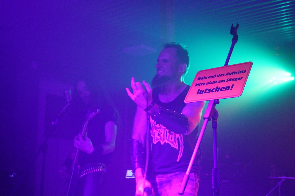 Den krönenden Abschluss bildeten SWORN ALLEGIANCE. Seit ich sie das letzte Mal gesehen habe, hat sich einiges geändert, ein neuer Schlagzeuger hinter der Schießbude, dann hat Steve wohl seine Klampfe verloren aber einen Gitarristen gefunden. Also treten sie jetzt in Fünferbesetzung auf und verdammt war das geil. Die Chemie stimmt, die Songs ballern und auch wenn Medusa einige Schulterprobleme hatte, hat sie durchgezogen, dafür schonmal Respekt. Zwar gab es deswegen nur einen Zugabesong.