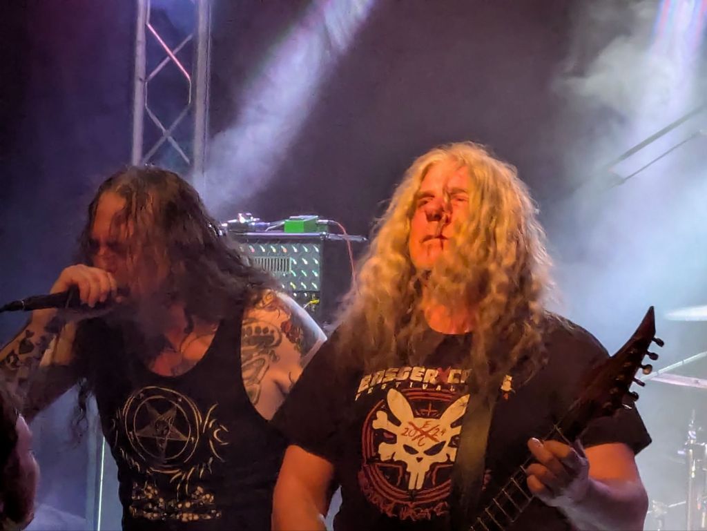 MASTER machten den Anfang und wegen einer Pause auf dem Weg haben wir die erste Viertelstunde ihres Auftritts verpasst. Trotzdem ein geiler Auftritt und live konnten sie mich endlich mal überzeugen. Death Metal, der zwar old-schoolig klingt, aber kein bisschen verstaubt, sondern frisch und brutal, wie es sein sollte.