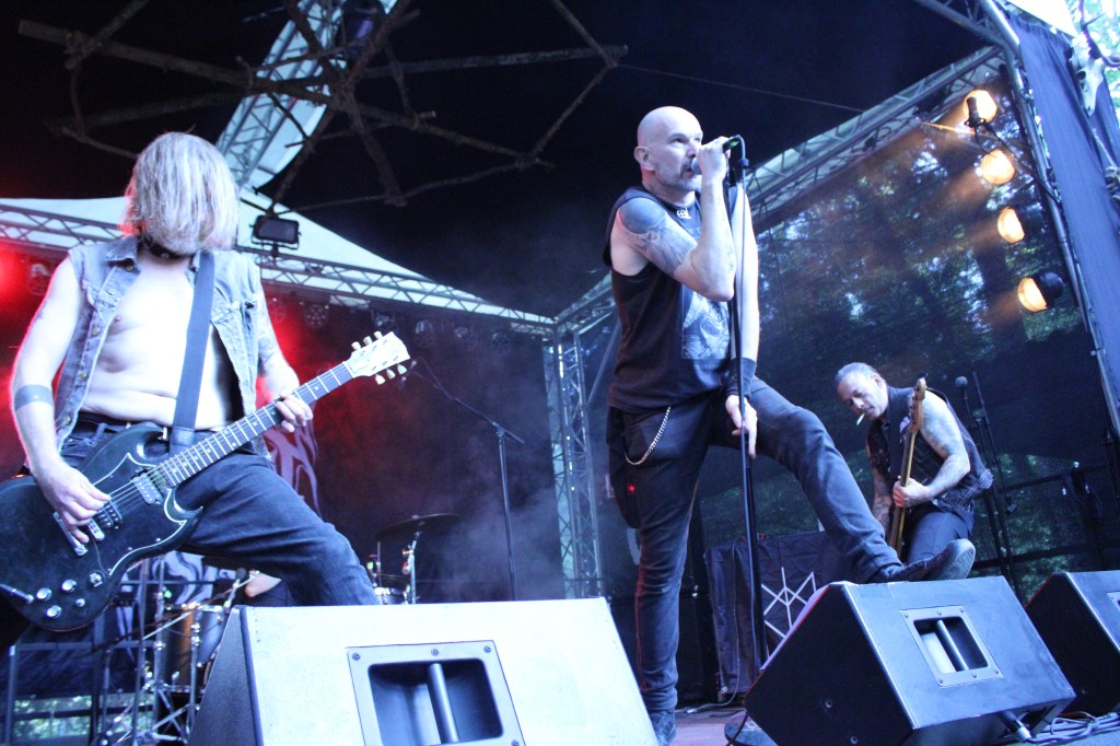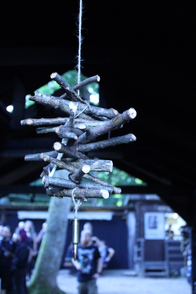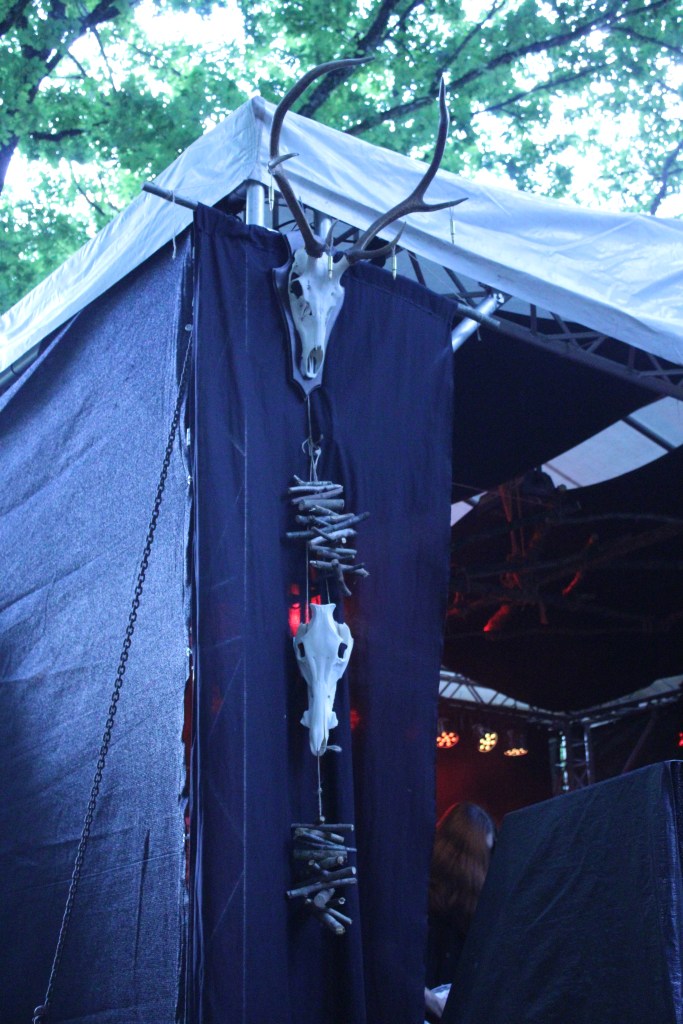 Das Festival: Die Location hat sich nicht viel verändert, nur dass dieses Jahr das Wetter richtig gut war. Im Wald, mit einer kleinen Grillhütte, Hütten für Abendkasse und Getränke und einem Unterstand in dem die Merchstände, zwei Händler und ein Fotograf mit einigen seiner Werke untergebracht waren. Dieses mal haben sie auch noch ein wenig mehr dekoriert, was mir ziemlich gut gefallen hat. Leider waren Dominance of Darkness dieses Mal nicht da, was aber wohl besser für meinen Kontostand ist.