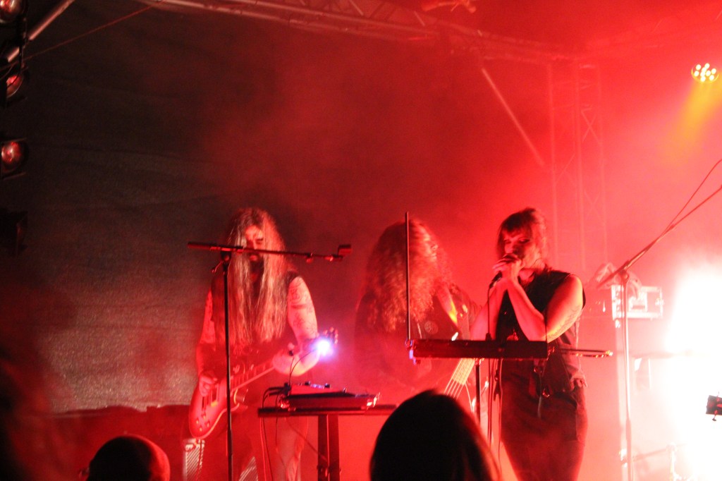 Ab Abschluss bildeten WOLVENNEST, mit Verspätung, die Problemen mit dem besonderen Instrument während des Soundchecks geschuldet war. Als es dann losging, wurde es seltsam. Nicht schlecht, aber eben seltsam und für mich der falsche Stil an diesem Abend. Ihre Musik ist sehr atmosphärisch, auch bisweilen experimentell, man bedenke, dass sie ein Teremin (Geisterharfe) mit auf der Bühne hatten. Nach vier brachialen Bands ist das schon ein Stilbruch. Trotzdem werde ich mich einmal reinhören, da ich mir sicher bin, dass sie mich in einem anderen Kontext bestimmt überzeugt hätten.