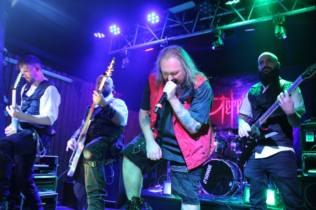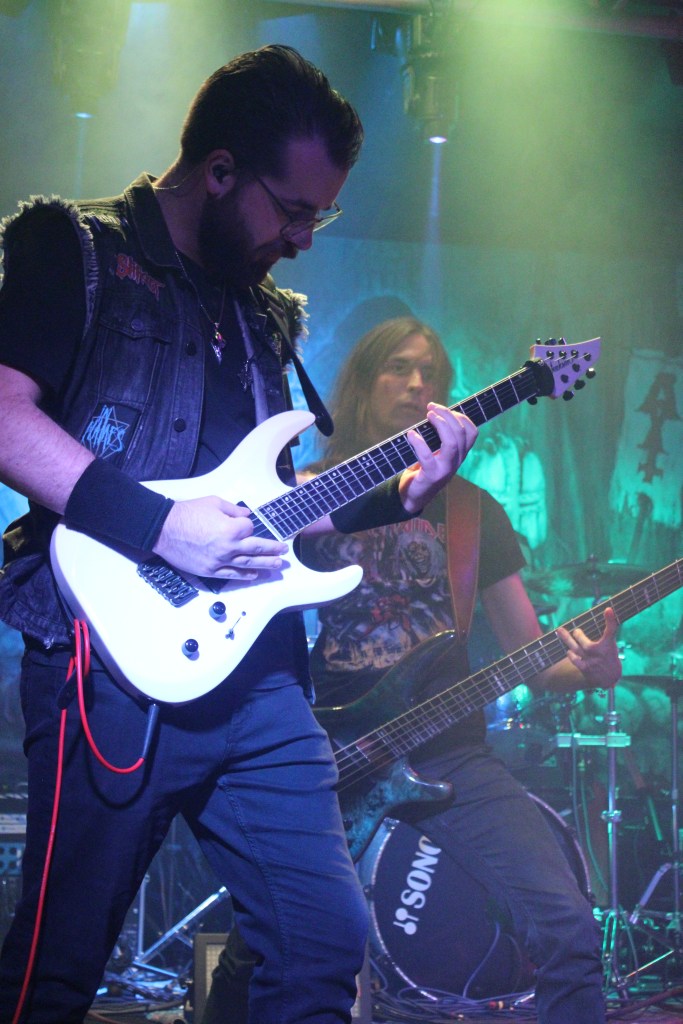 AXIT haben den Abend eröffnet, wie bei meinem ersten Besuch hier. Wieder gab es fiesen Death Metal auf die Ohren und mitten auf die Schnauze. Zwischen dem Geballer gab es Ansagen und einiges an Publikumsinteraktion um die Leute etwas anzuheizen. Der Sänger ließ sich sogar im Moshpit, der kontinuierlich gewachsen ist, ein wenig die Rüstung verbeulen.